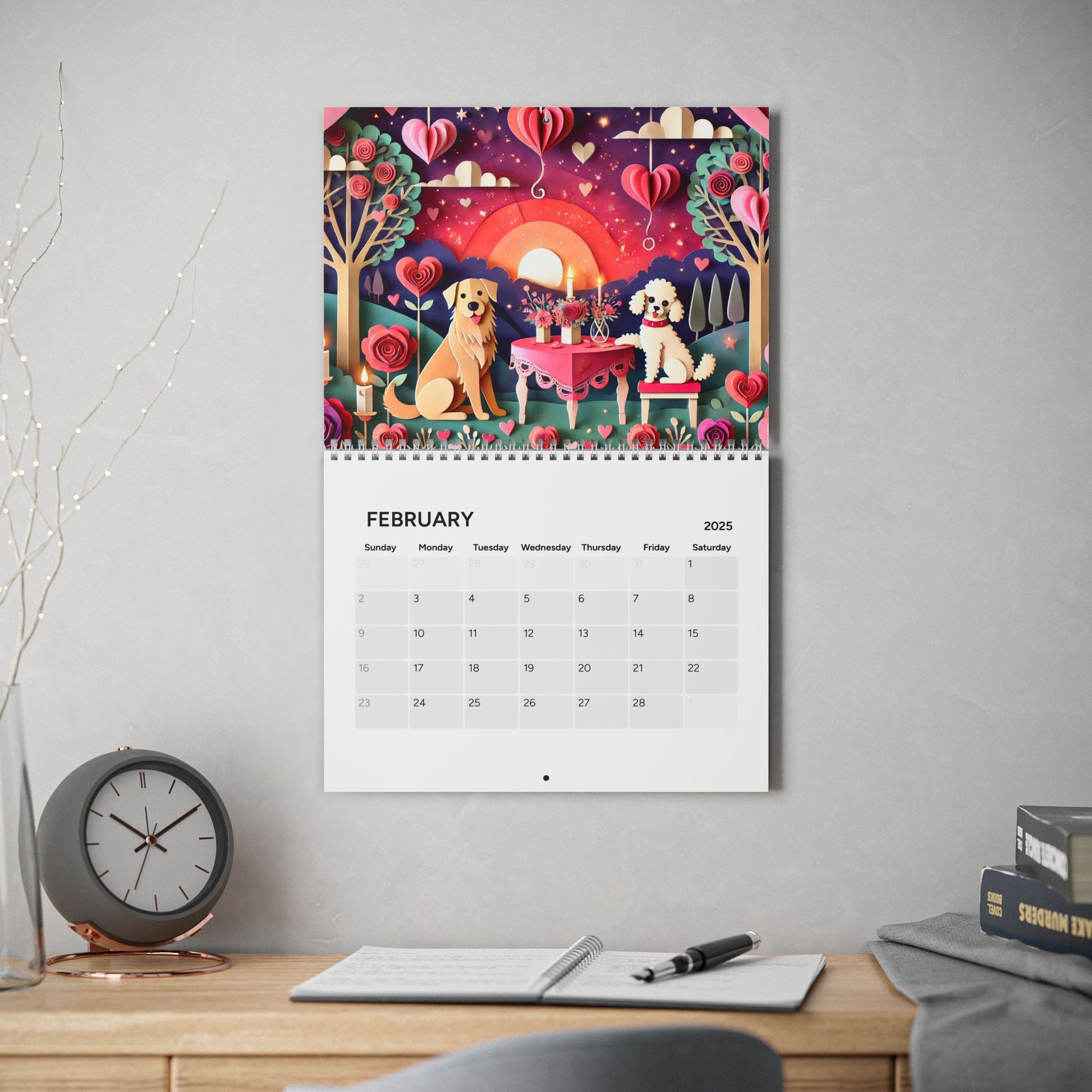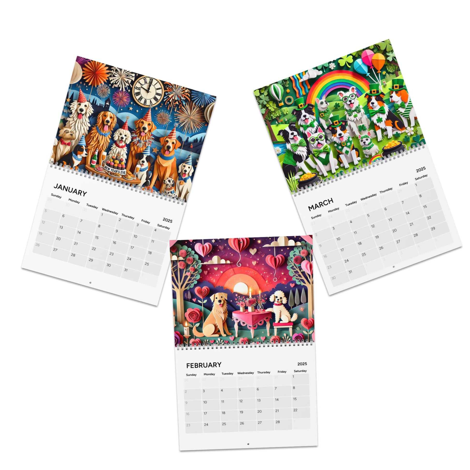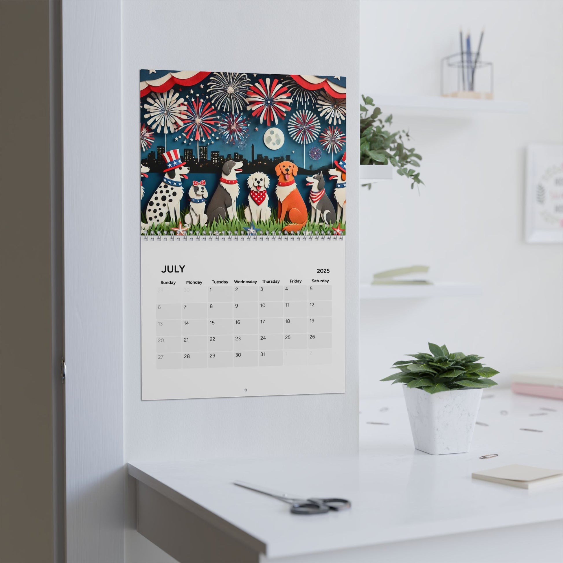 Sophie's 2025 Wall Calendar - Cut Outs gives a modern and artistic vibe to any space. Perfect for organizing your appointments, events, and deadlines for the upcoming year. Ideal for students, professionals, and anyone who loves decorating their space with unique and colorful designs. Relevant for New Year's, back to school, and office celebrations.