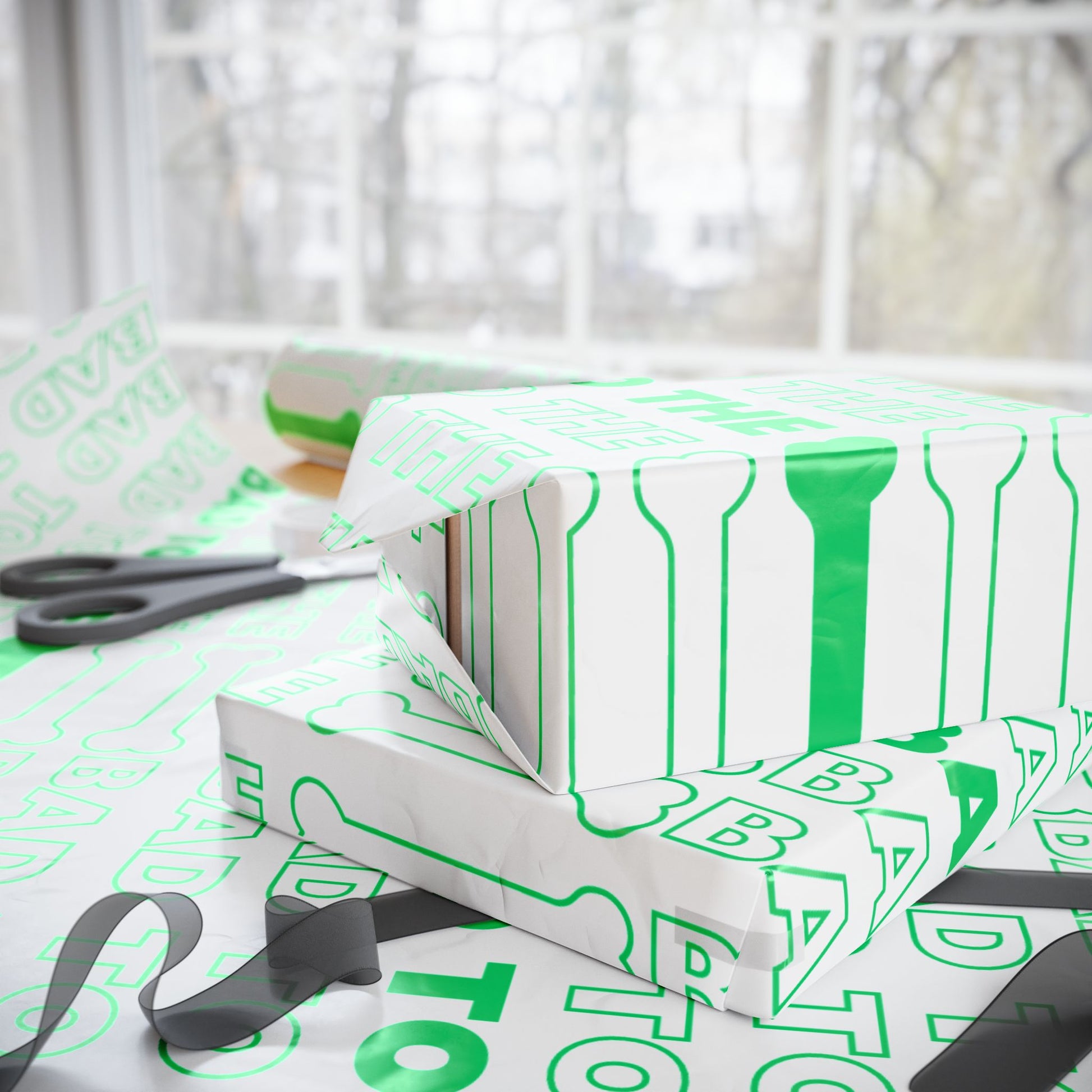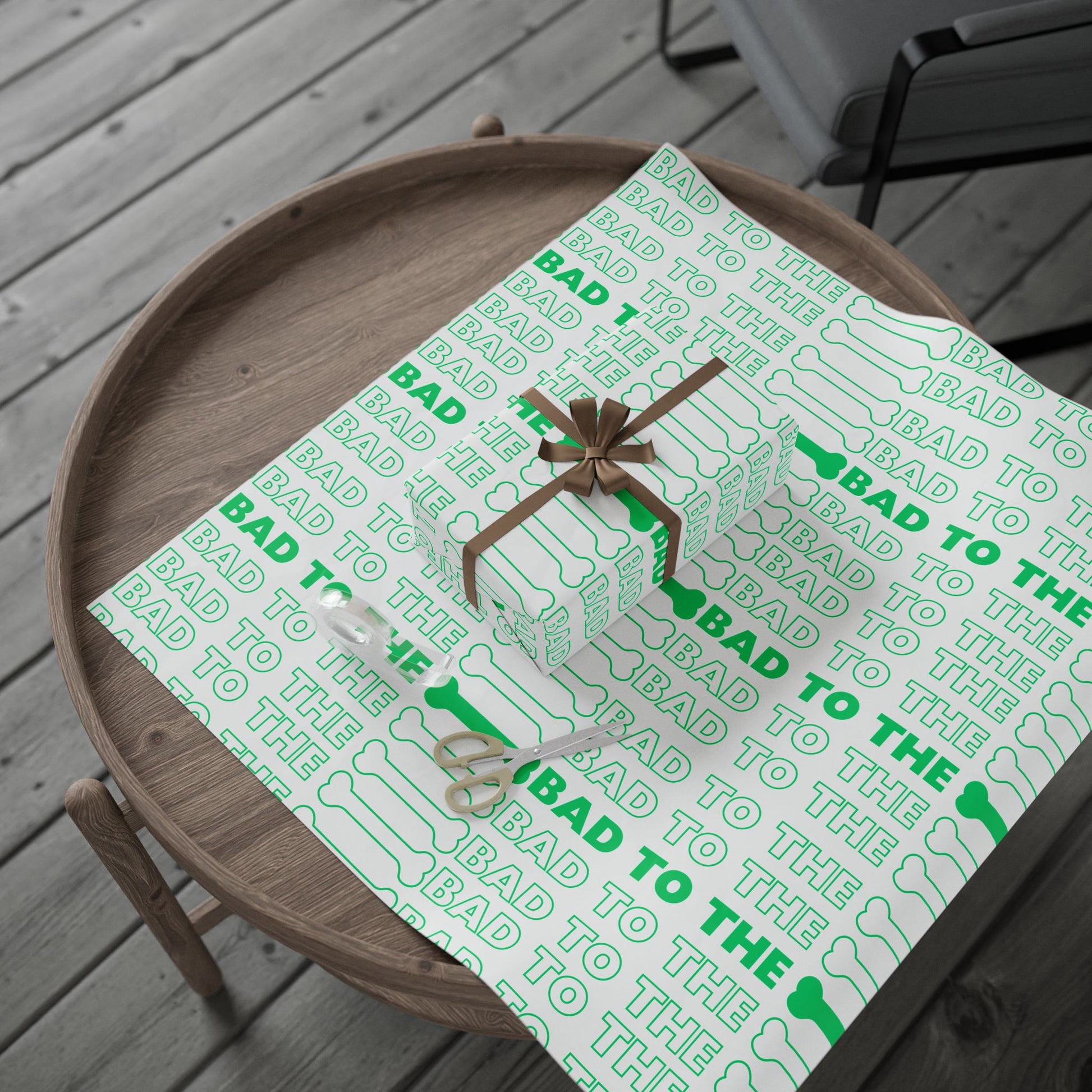 This Bad to the Bone Green on White wrapping paper exudes a cool and edgy vibe, perfect for wrapping gifts for those who love a little rebellious touch. Ideal for birthdays, holidays, and any occasion where you want to add a unique flair to your presents. Relevant to gift-givers looking for something different and bold.